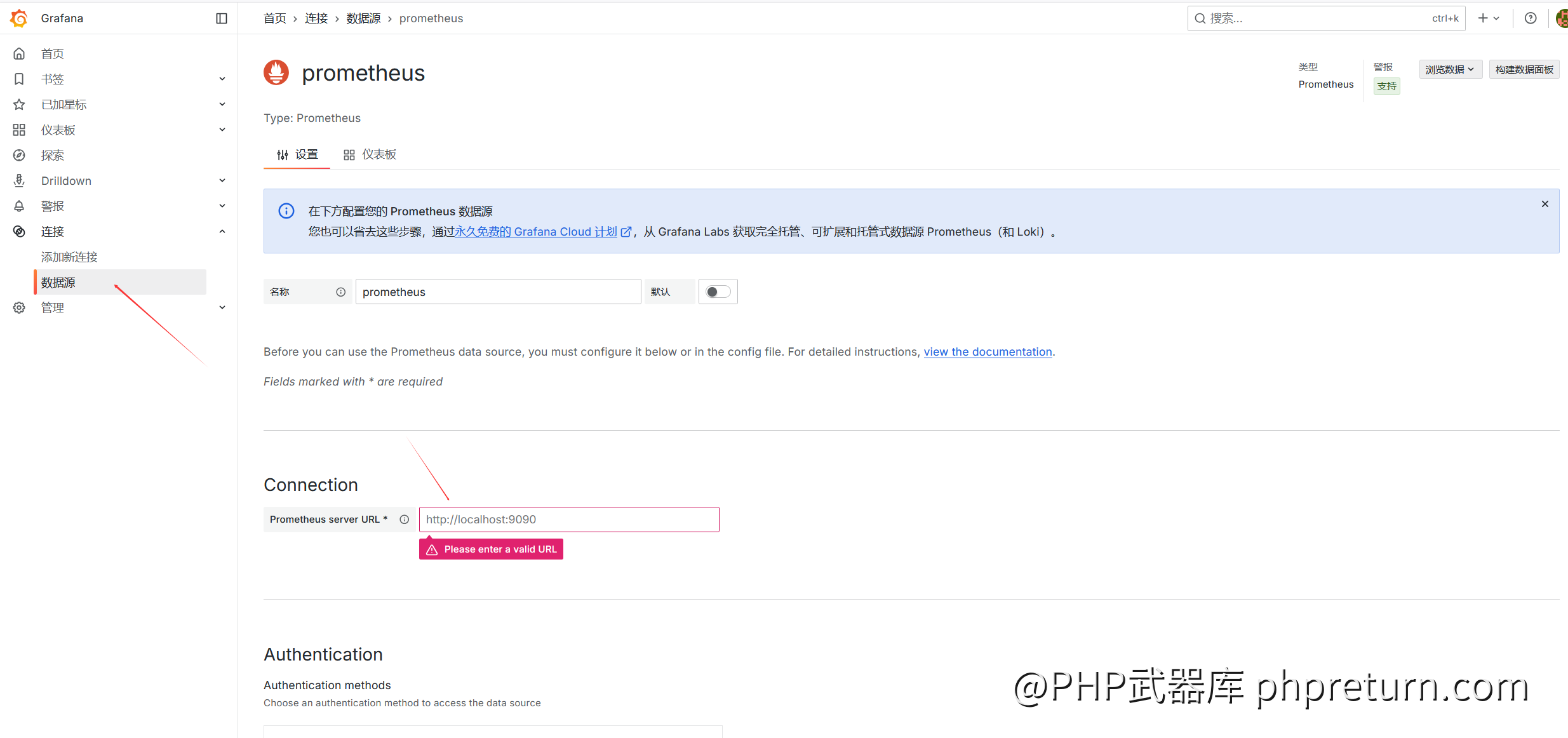 添加 Prometheus 数据源