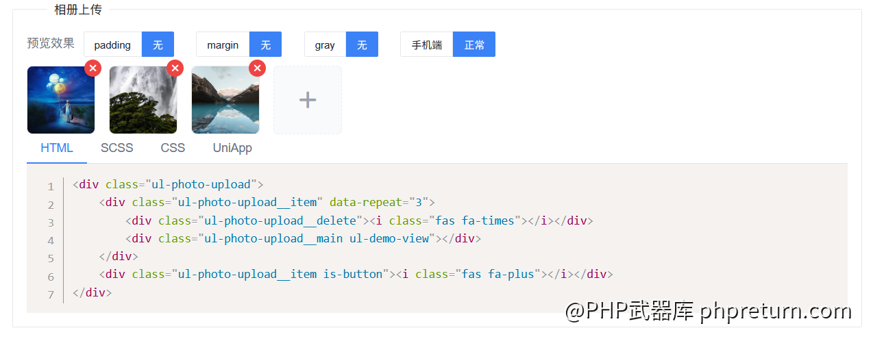 - 相册与上传 (Album & Upload): 图集相册